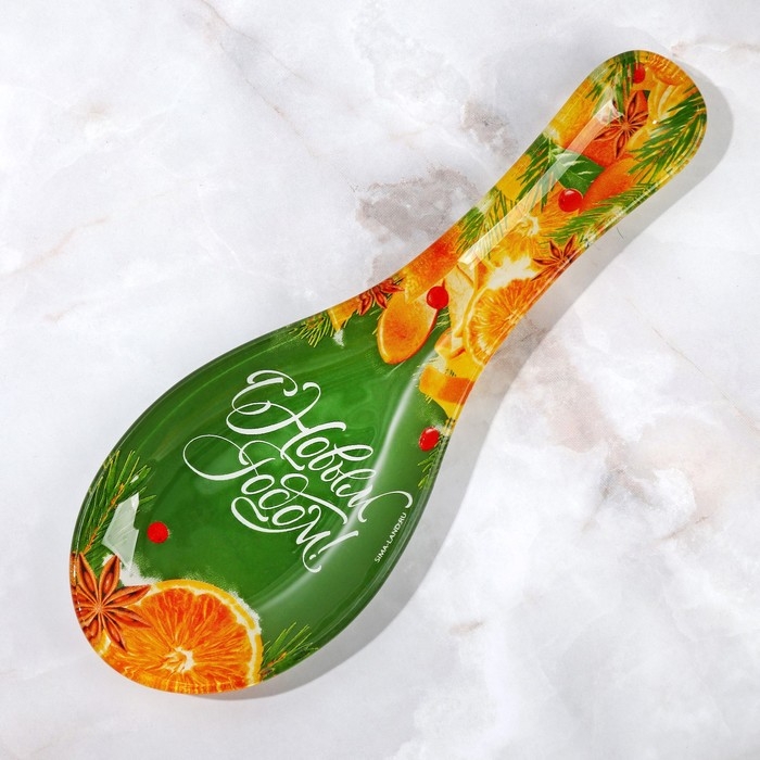 Подставка под ложку новогодняя Дорого внимание «На счастье», 21,4 х 7,5 см, стекло
