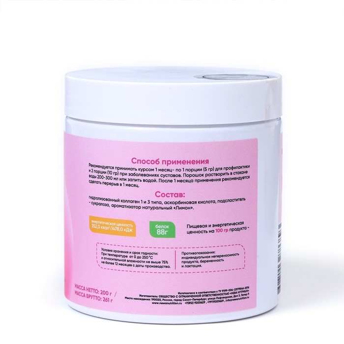 - Гидролизованный говяжий коллаген: Этот продукт содержит высококачественный гидролизованный коллаген, который легко усваивается организмом. Коллаген - это основной белок, который составляет кожу, суставы, волосы и ногти, и его употребление способствует сохранению их здоровья и красоты.