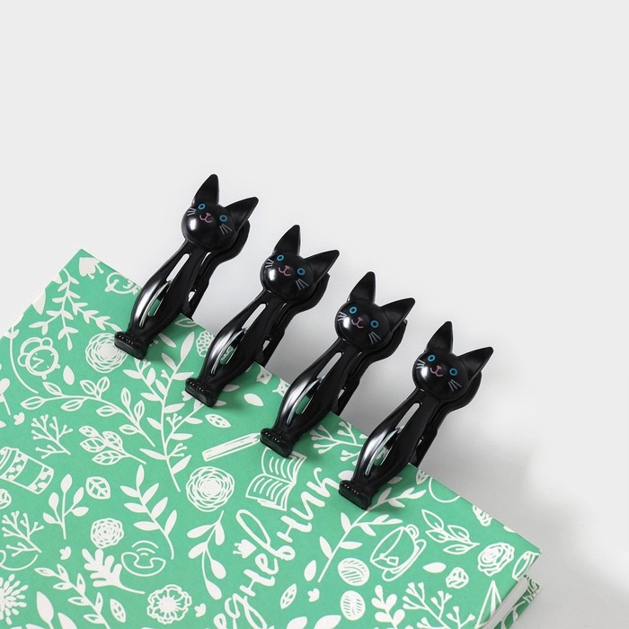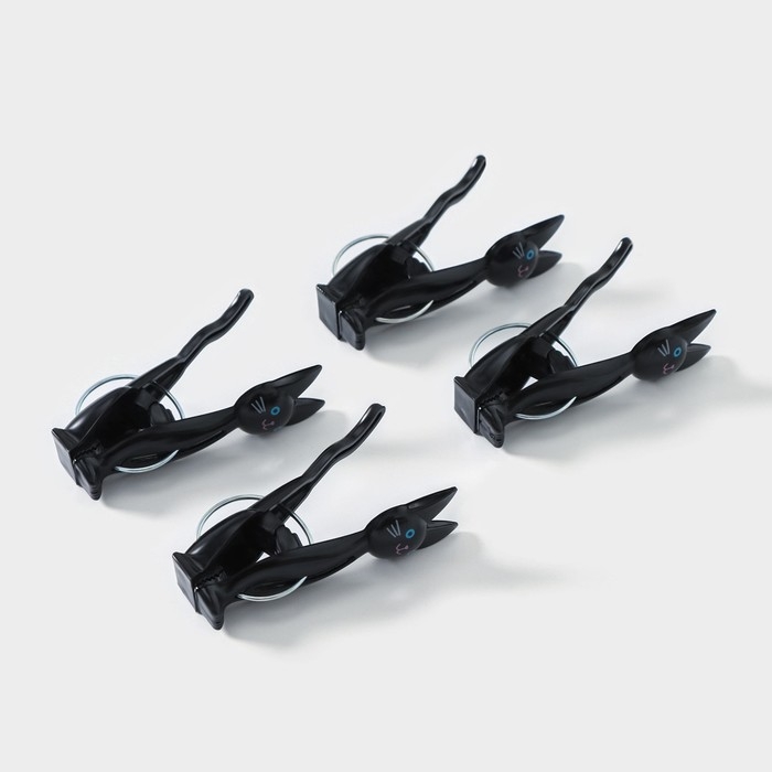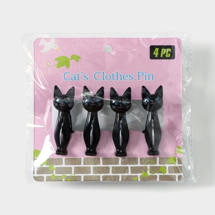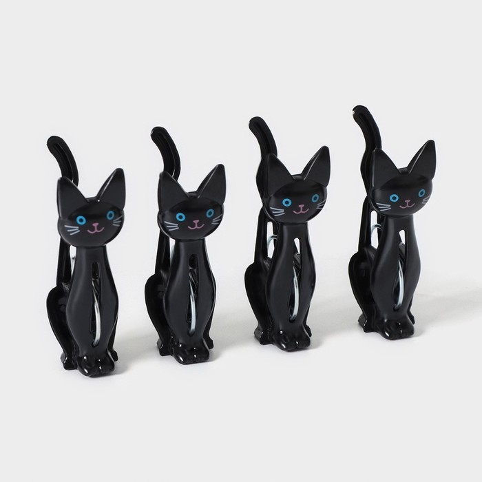 Набор прищепок «Коты», 4 шт, 7×2×4 см, цвет чёрный