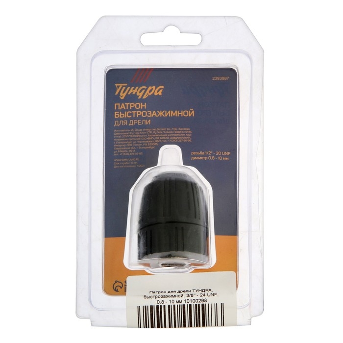 Патрон для дрели ТУНДРА, быстрозажимной, 3/8" - 24 UNF, 0.8 - 10 мм