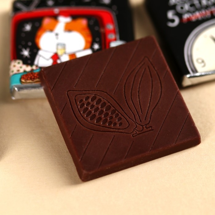 Состав: сахар, какао-масло, сухие молочные продукты, какао тёртое, какао-порошок, эмульгаторы (лецитин соевый – Е322, PGPR – Е476), ароматизатор пищевой «Ванилин».