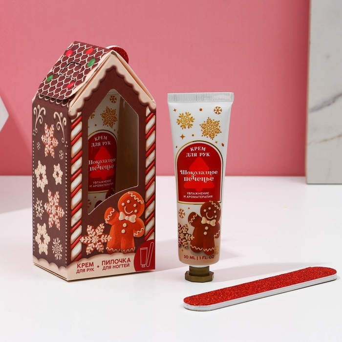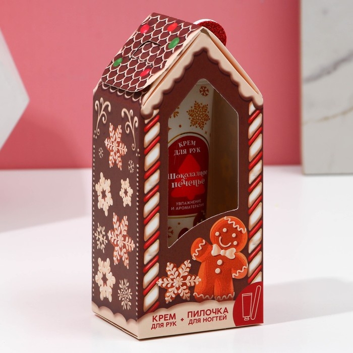 Подарочный набор ЧИСТОЕ СЧАСТЬЕ «Пряничный домик»: крем для рук 30 мл и пилка для ногтей, Новый Год