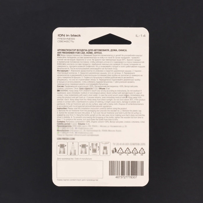 Ароматизатор подвесной бутылочка ION Свежесть, 5 мл, IL-14