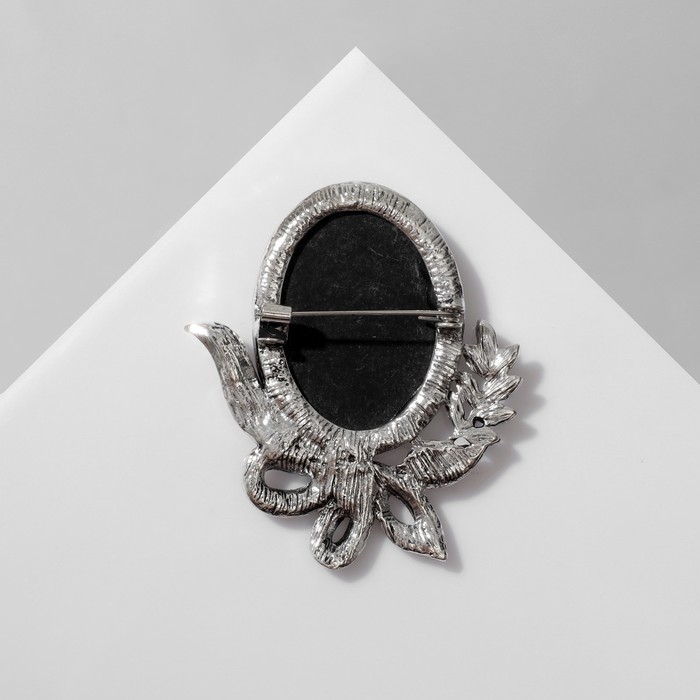 Брошь "Камея" лавра, цвет серый в чернёном серебре
