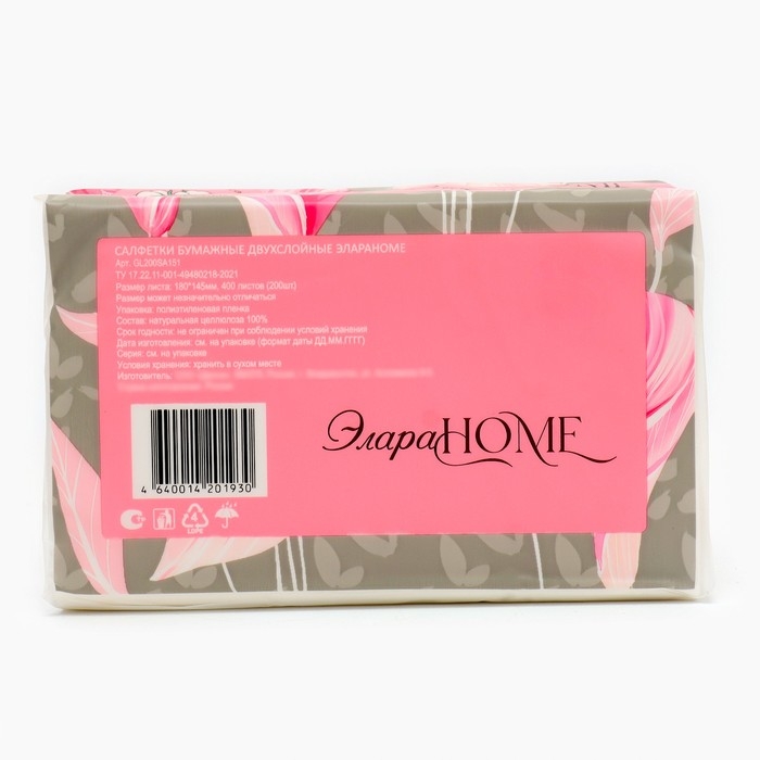 Салфетки бумажные в мягкой упаковке Элара Home, 200 шт.
