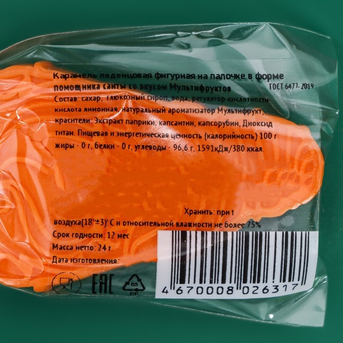 Леденец в новогодней тематике - это отличный, оригинальный подарок. Фигурные леденцы произведут WOW эффект на гостей, украсят любой десерт или могут стать оригинальным подарком ребёнку и взрослому. Подойдёт в качестве украшения кондитерских изделий. Оригинальная сладость - отличное угощение для больших и взрослых любителей сладостей. Упакован в индивидуальную упаковку.
