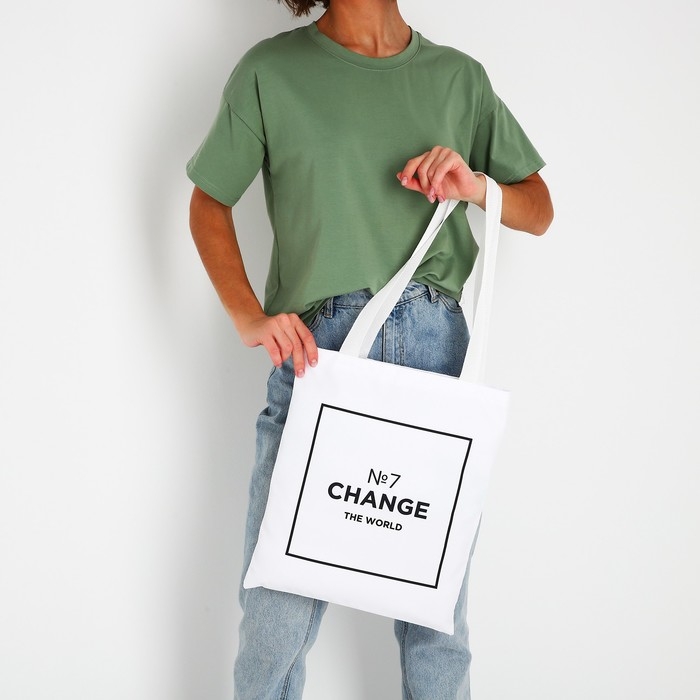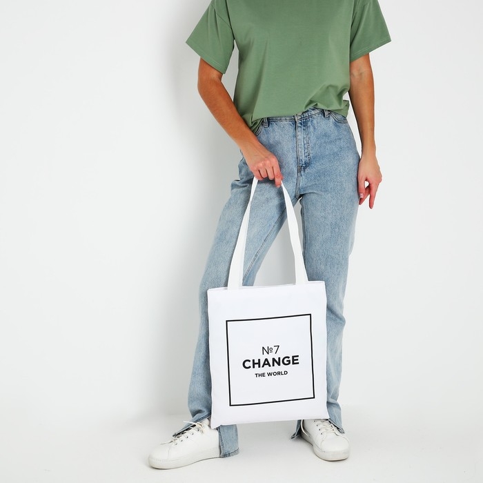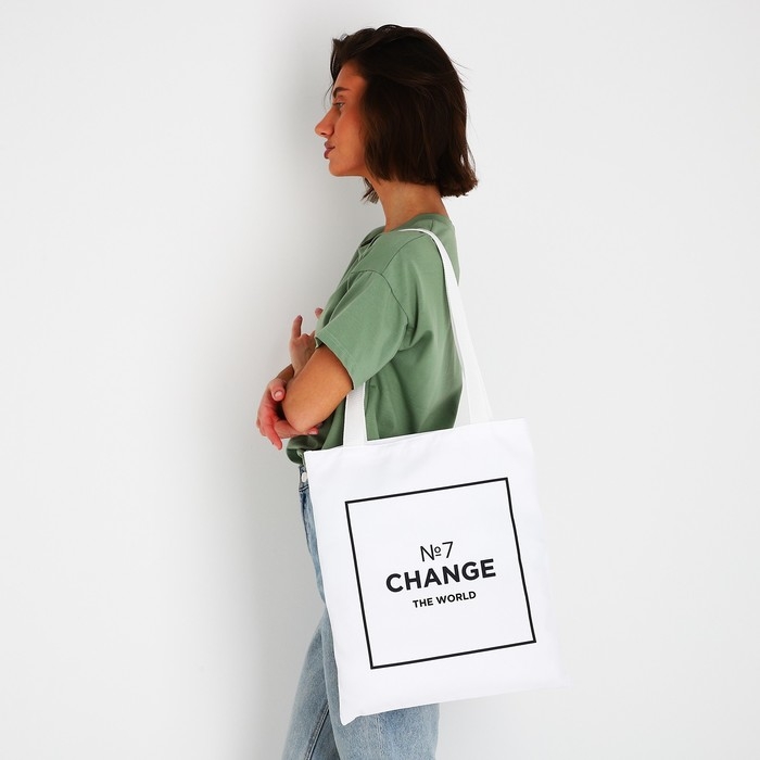 Шопер «Измени мир» 35х0.5х40 см, отдел без молнии, без подклада, белый