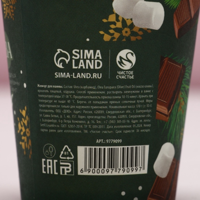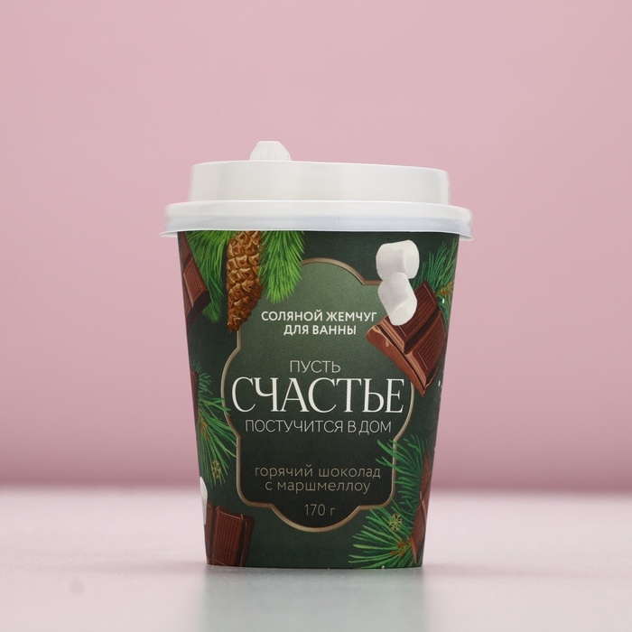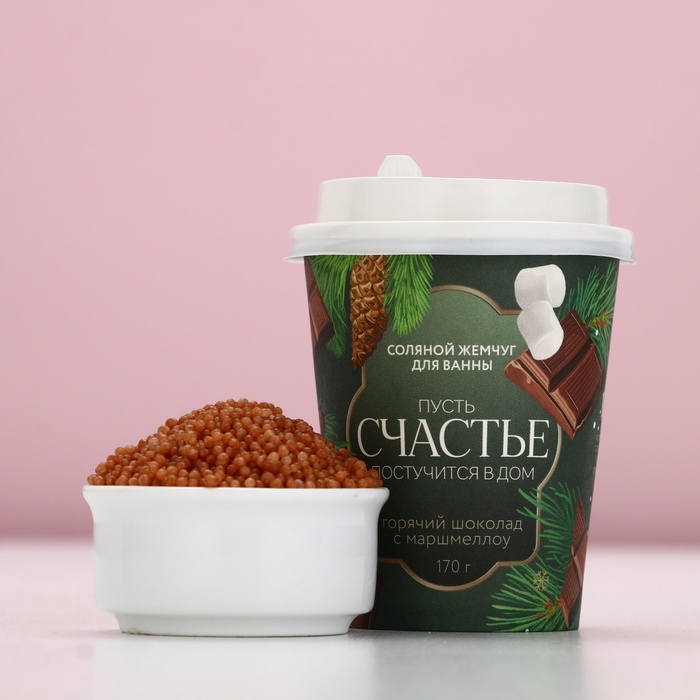 Жемчуг для ванны ЧИСТОЕ СЧАСТЬЕ «Постучится в дом!», 170 г, аромат горячего шоколада с маршмеллоу, Новый Год