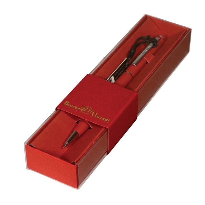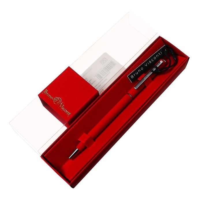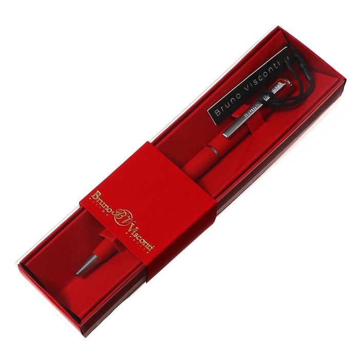 Ручка шариковая поворотная, 0.7 мм, BrunoVisconti PALERMO, стержень синий, металлический корпус Soft Touch красный, в красном футляре