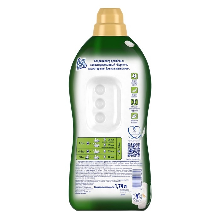 Кондиционер для белья Vernel - это отличное средство для ухода за вашей одеждой. Он обладает антистатическим эффектом, облегчает глажку и придает белью мягкость и свежесть. Vernel также обладает приятным ароматом, который сохраняется на белье после стирки.