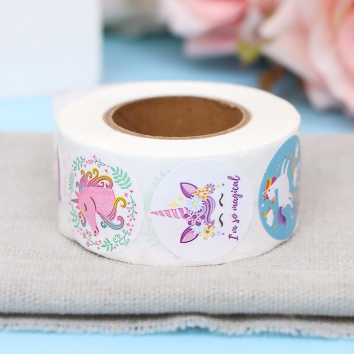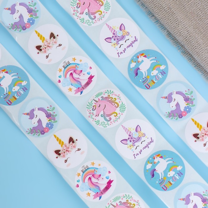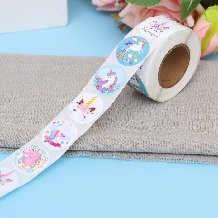 Наклейки в рулоне "Единорожки",500 шт,2,5 х 2,5 см