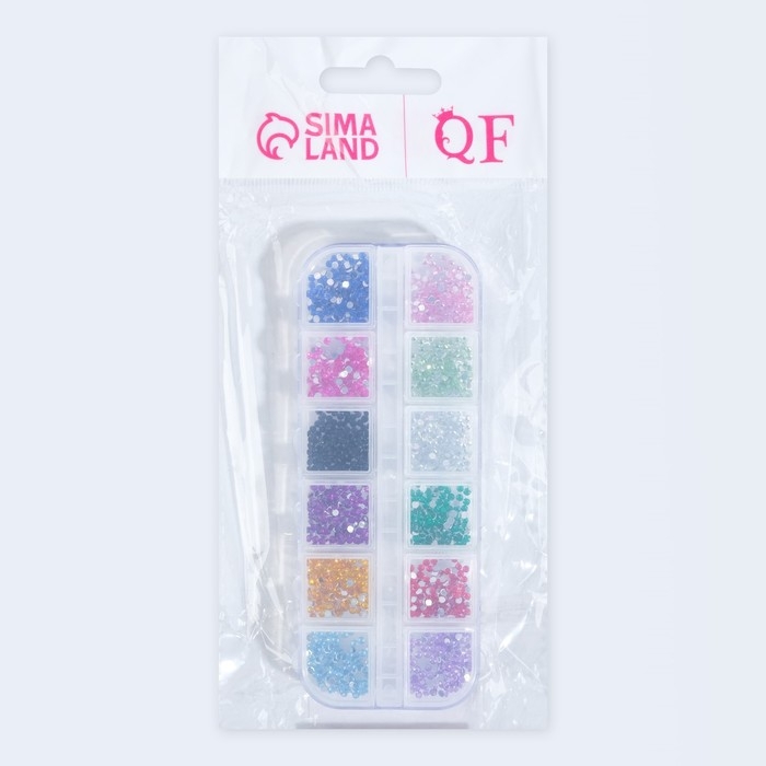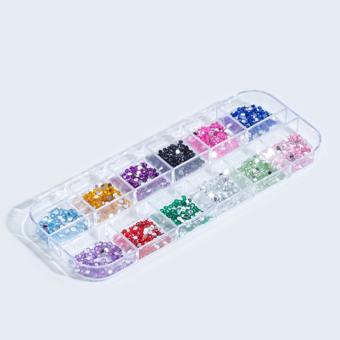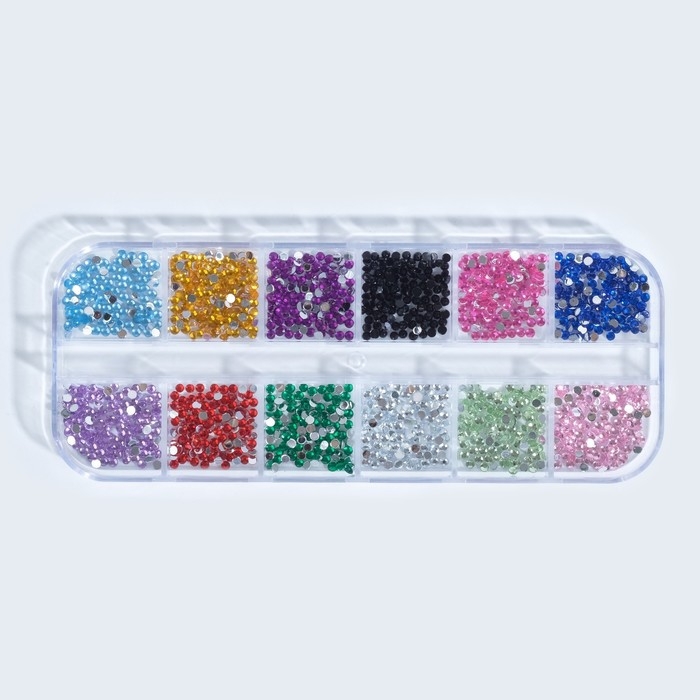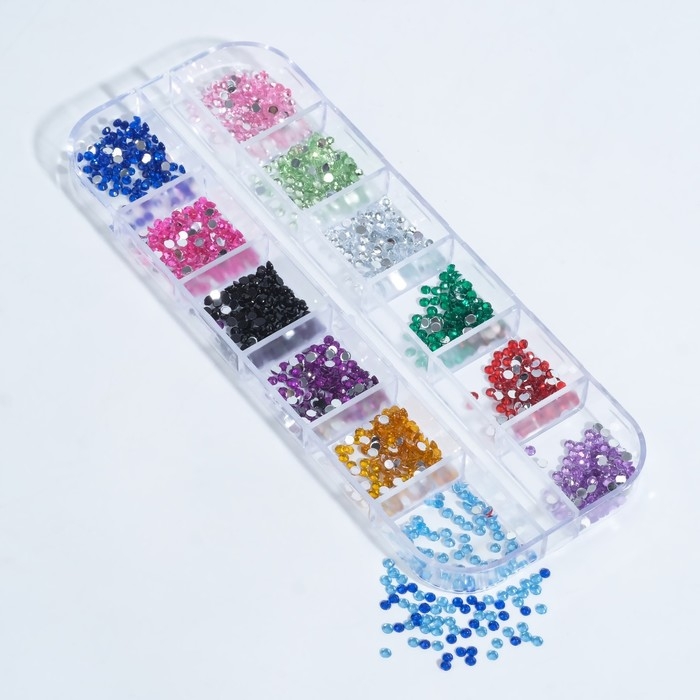 Стразы для декора, 12 ячеек, 2 мм, разноцветные