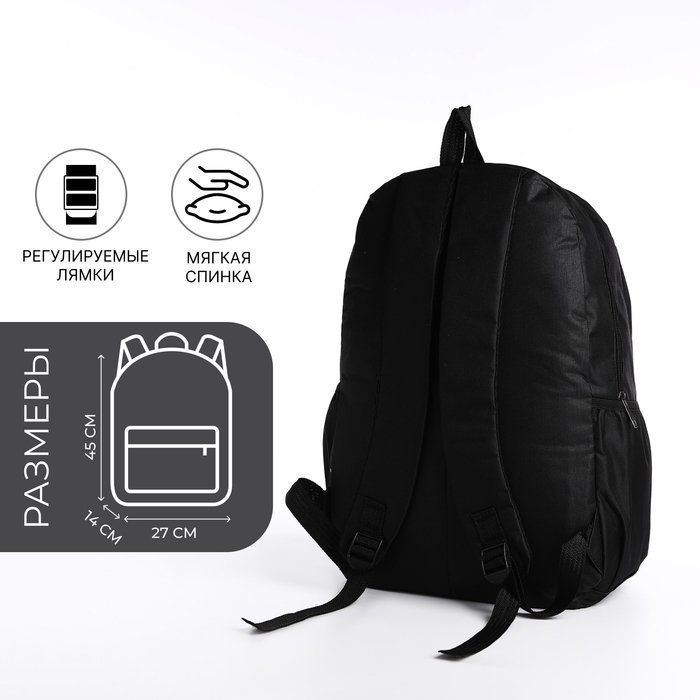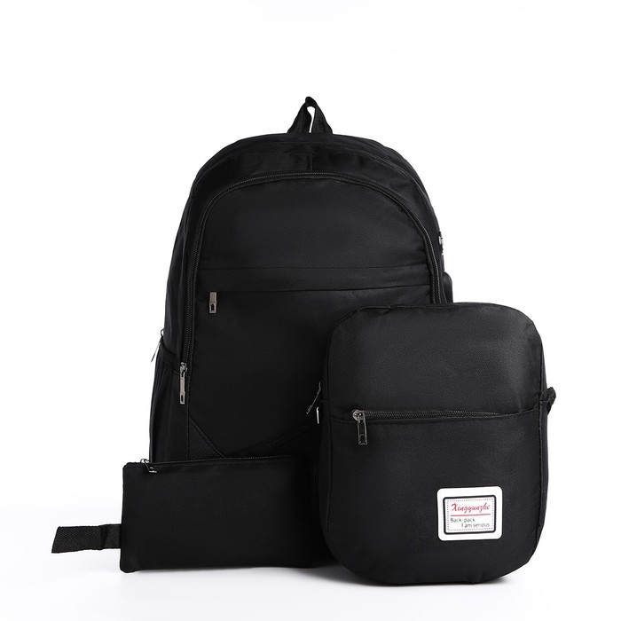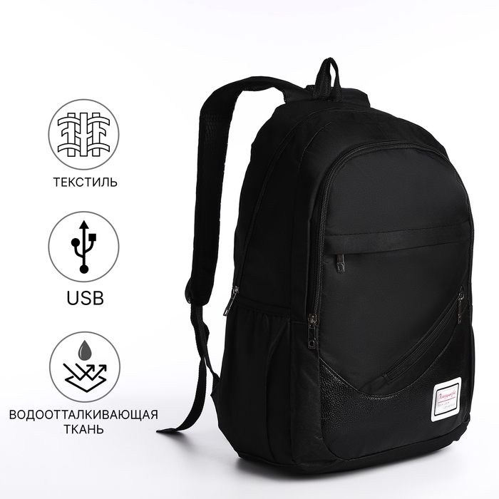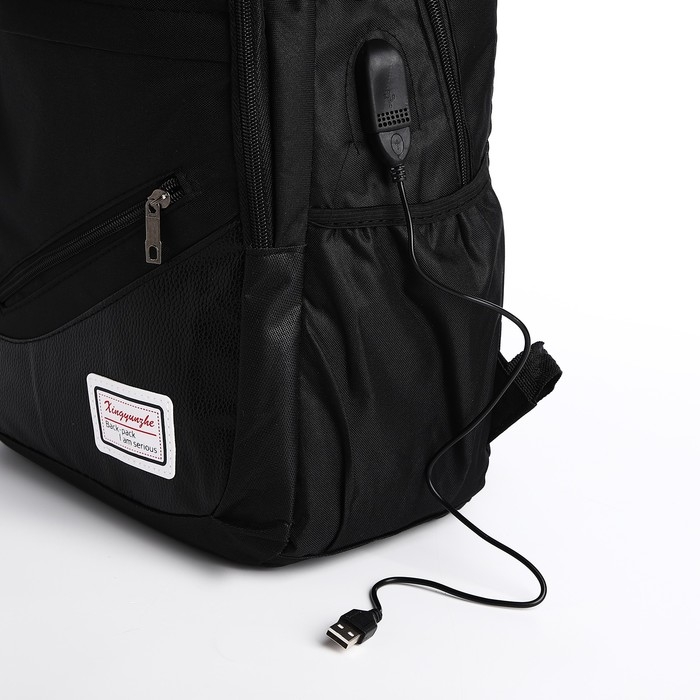 Рюкзак школьный на молнии, с USB, 4 наружных кармана, сумка, пенал, цвет чёрный