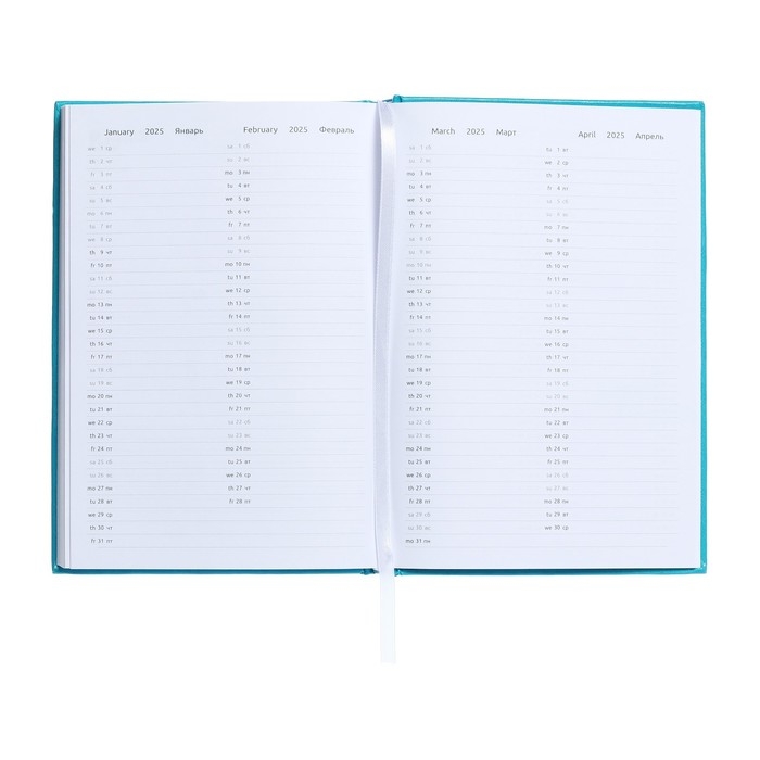 Ежедневник датированный 2025 года, deVENTE. Flag, A5 168 листов, Attomex. Even, твердая обложка бумвинил с поролоном, шелкография, ляссе, блок 70 г/м2, бирюзовый