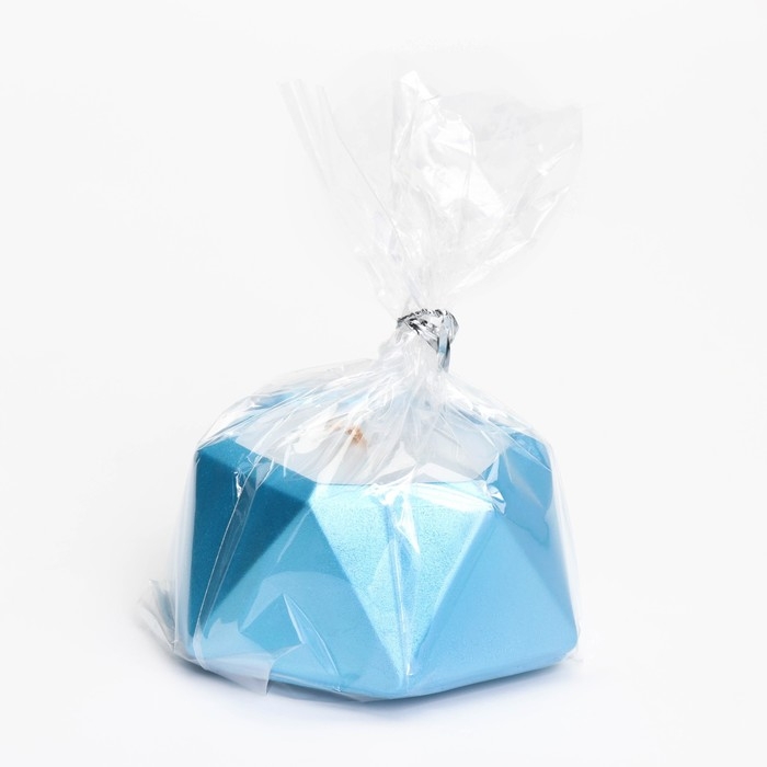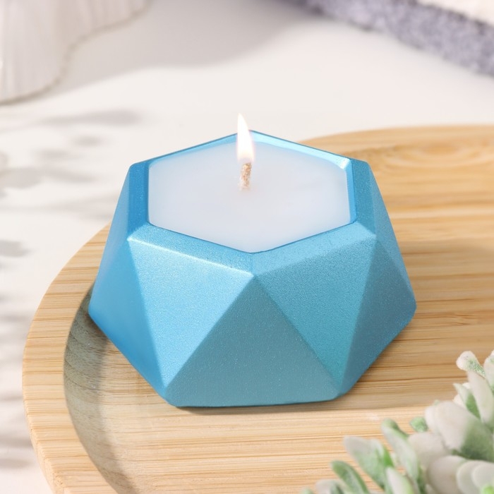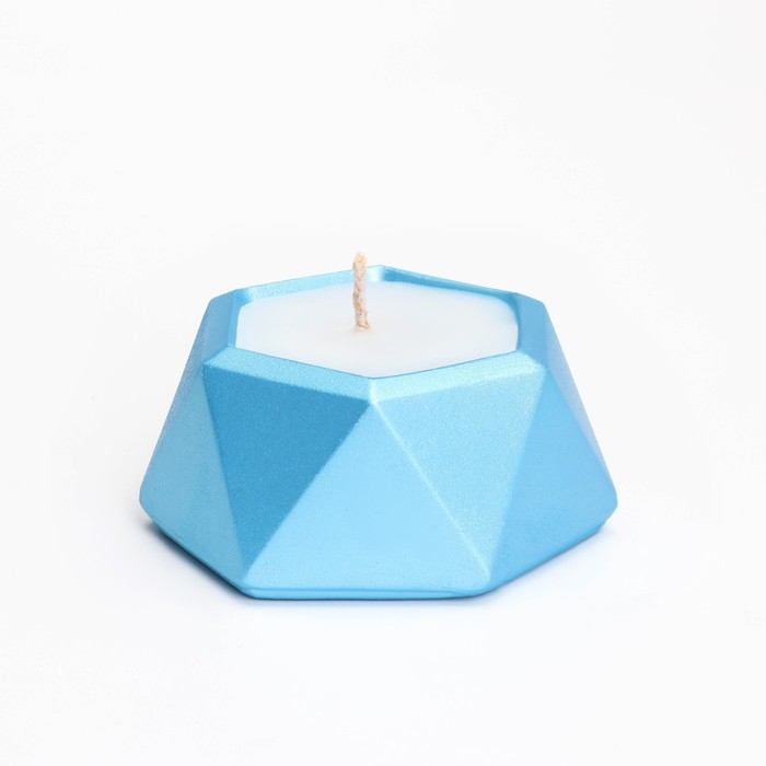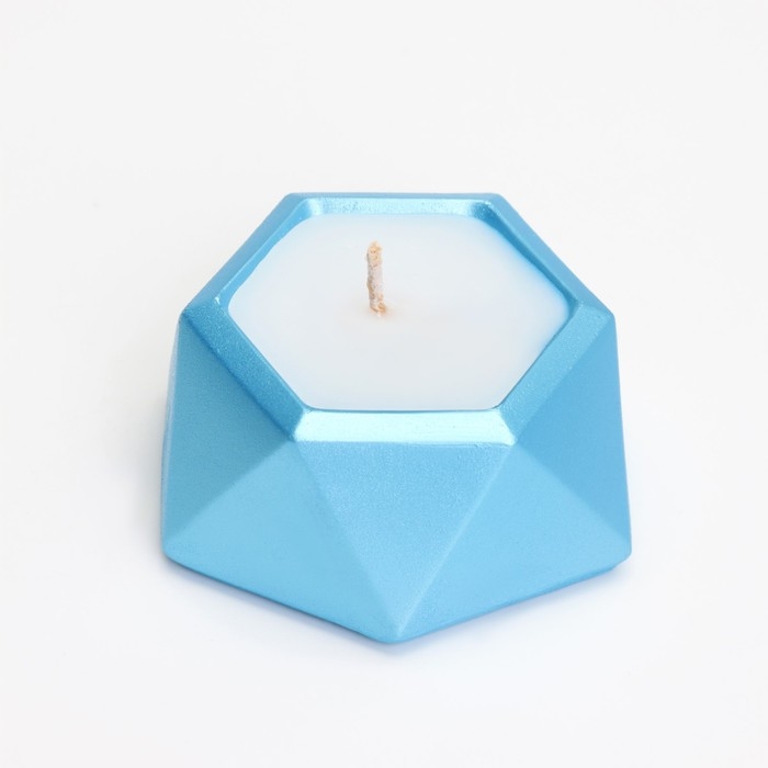 Свеча "Шестиугольник. Мрамор" в подсвечнике из гипса малый,7х3,5см,голубой