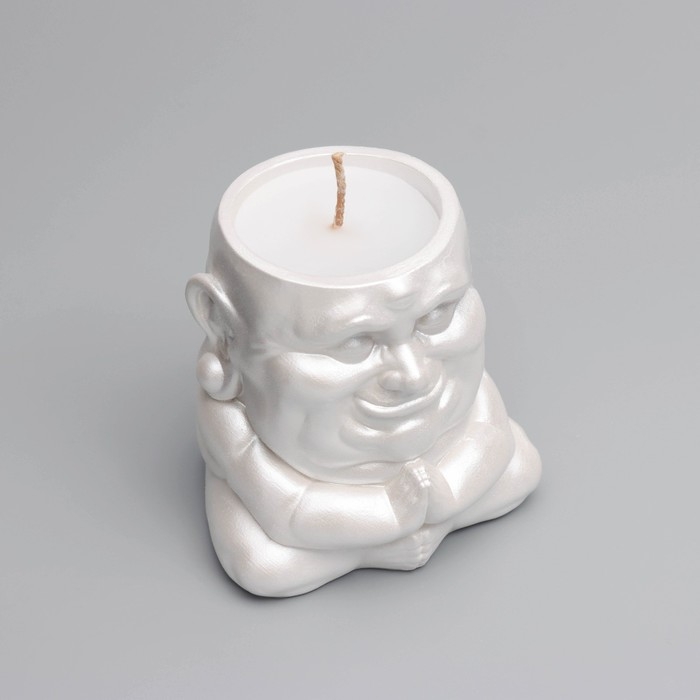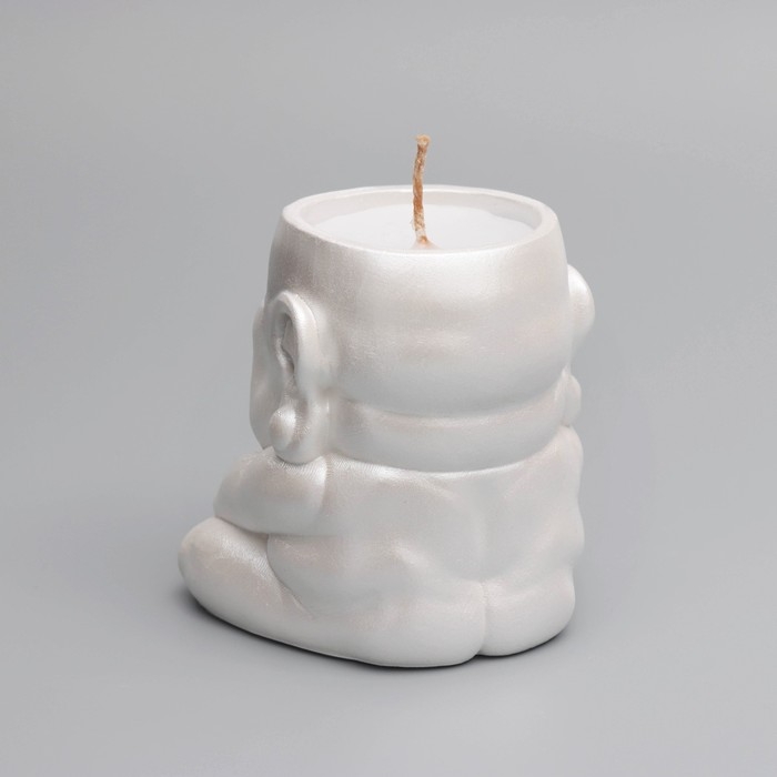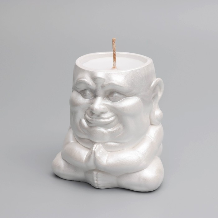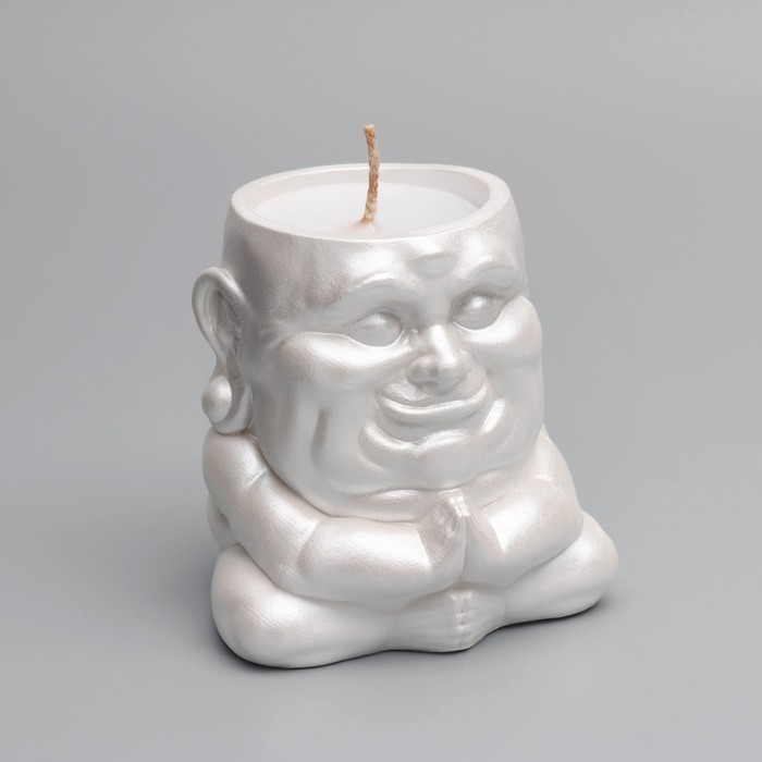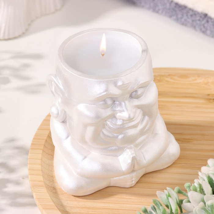 Свеча "Будда" в подсвечнике из гипса,8х8х8,5см, белый перламутр