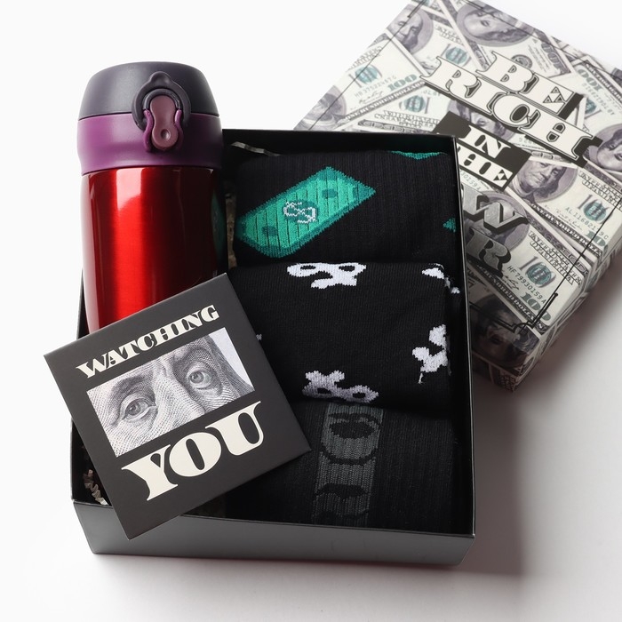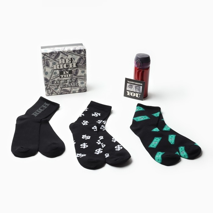 Набор подарочный новогодний термос и носки 3 пары KAFTAN Be rich, размер 41-44 (27-29 см)