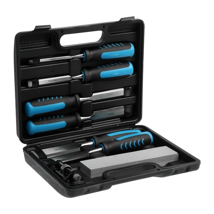 Набор стамесок ТУНДРА, 2К рукоятки, 45 сталь, 6 - 38 мм, с набором для заточки, кейс, 6 шт. 960445