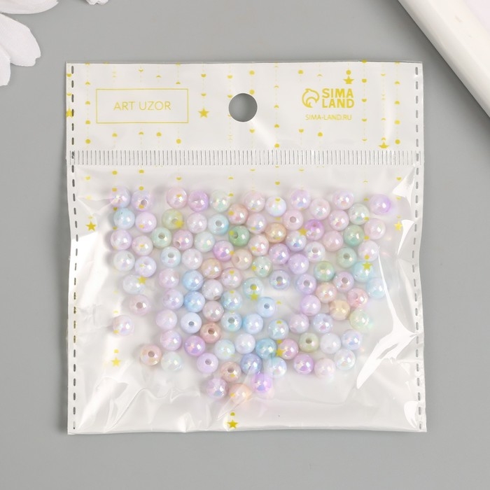 Бусины для творчества пластик "Шарики перламутровый градиент" d=0,6 см набор 100 шт