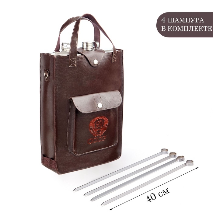 Фляжка для алкоголя "СССР", нержавеющая сталь, чехол, 5.15 л, с 4 шампурами l-40 см
