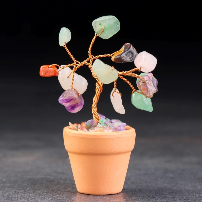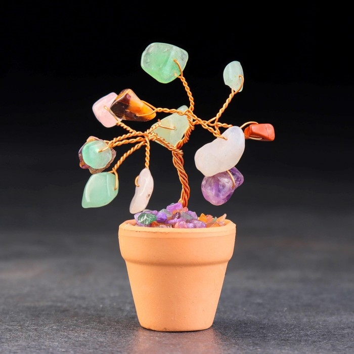 Сувенир в горшочке "Дерево жизни. Самоцветы", натуральный камень, 9 х 3,5 см