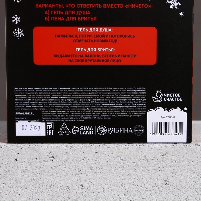 Подарочный набор ЧИСТОЕ СЧАСТЬЕ «Ничего»: гель для душа 250 мл и гель для бритья 110 мл, Новый Год