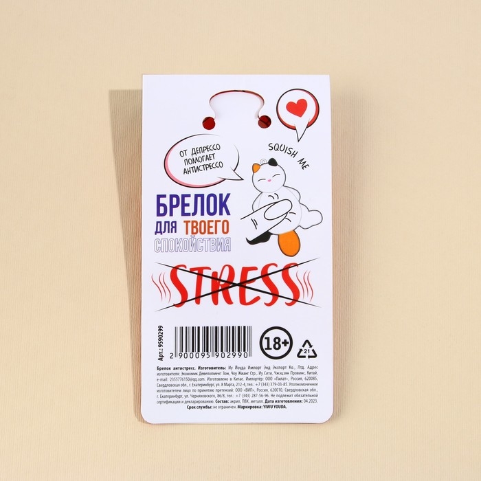 Брелок мялка для ключей «Кот» 5 х 3,8 см