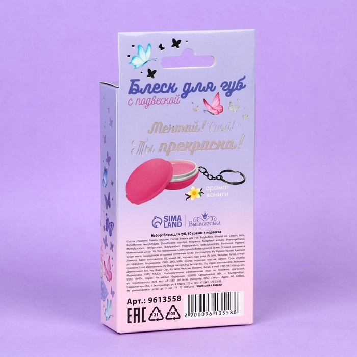 Блеск для губ с подвеской «Ты прекрасна», 10 гр