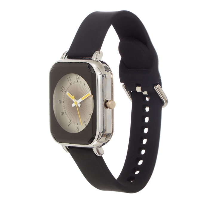 Часы наручные кварцевые женские, d-2 см, ремешок силикон l-25 см, черные