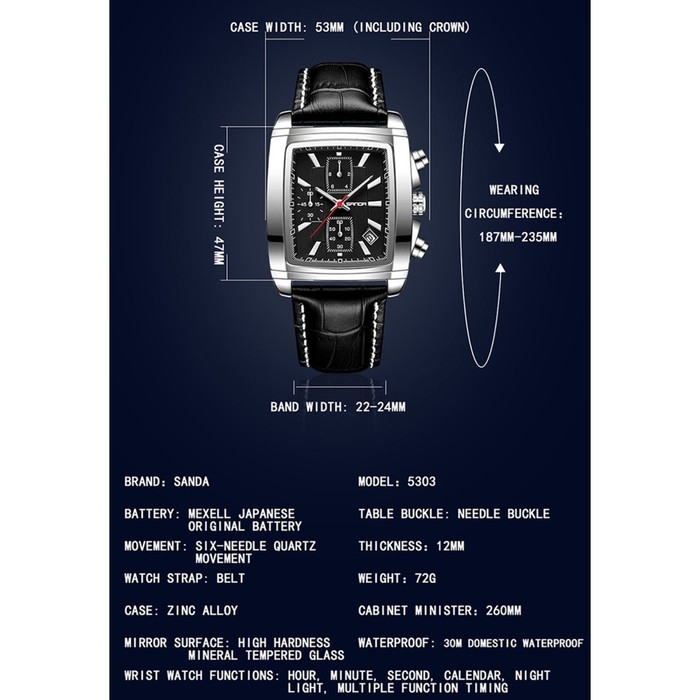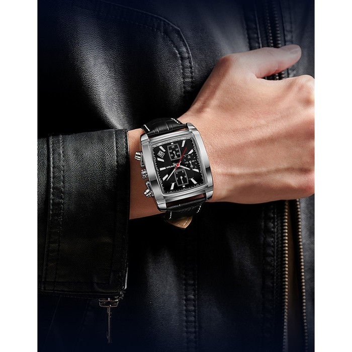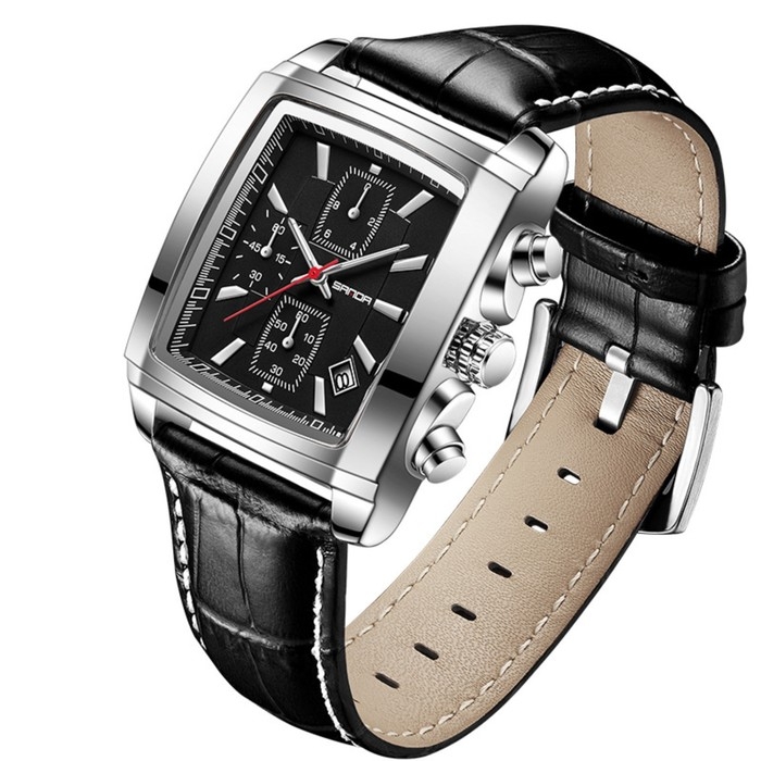Часы наручные кварцевые мужские, d-4 см, календарь, водонепроницаемые, светящиеся, ремешок кожа, чер