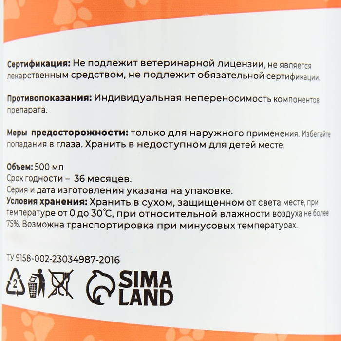 Шампунь "МОЙ ВЫБОР"антипаразитарный от блох и клещей, для кошек и собак, 200 мл