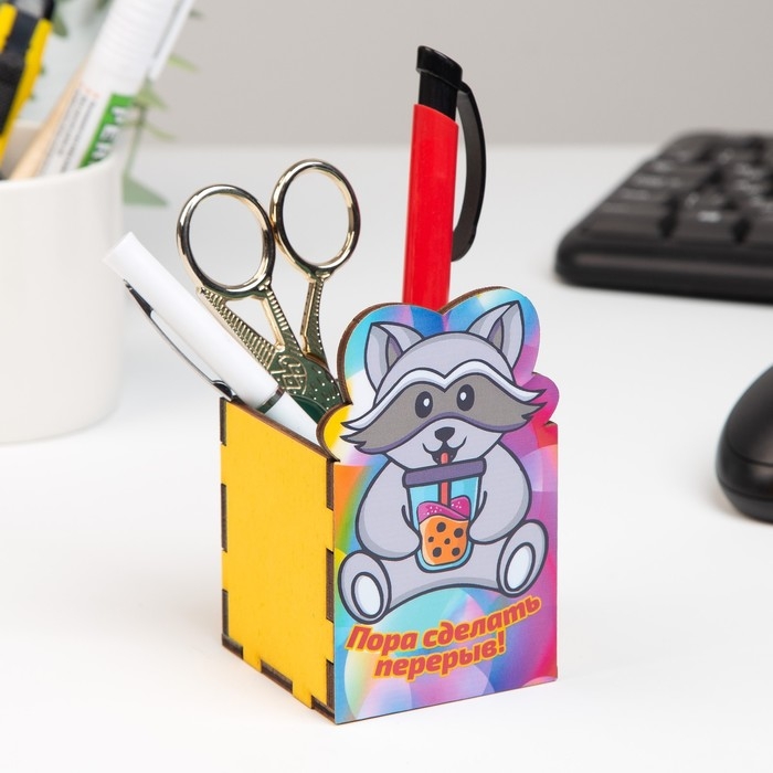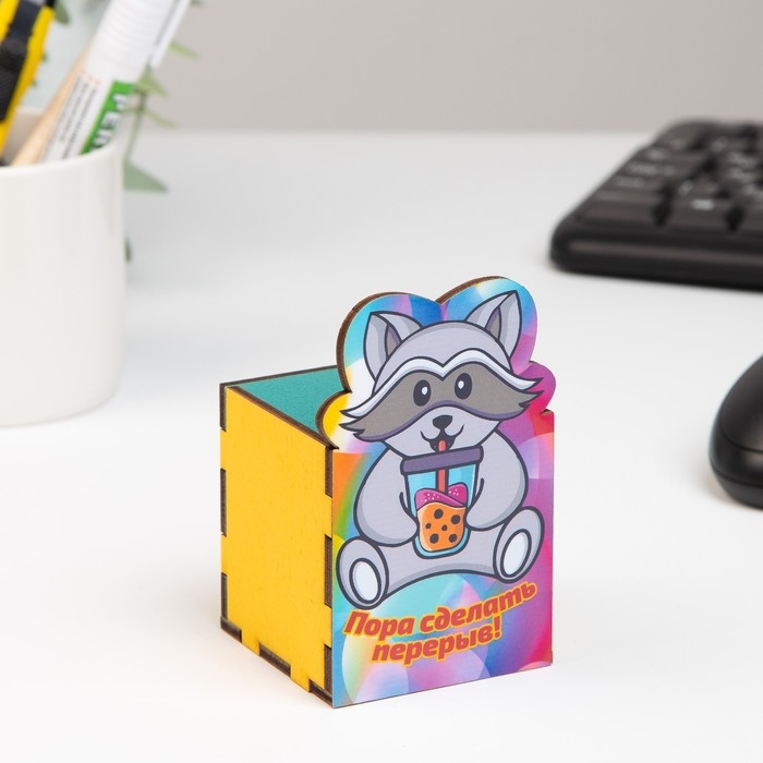 Карандашница "Пора сделать перерыв!" енот, 6х6х10 см