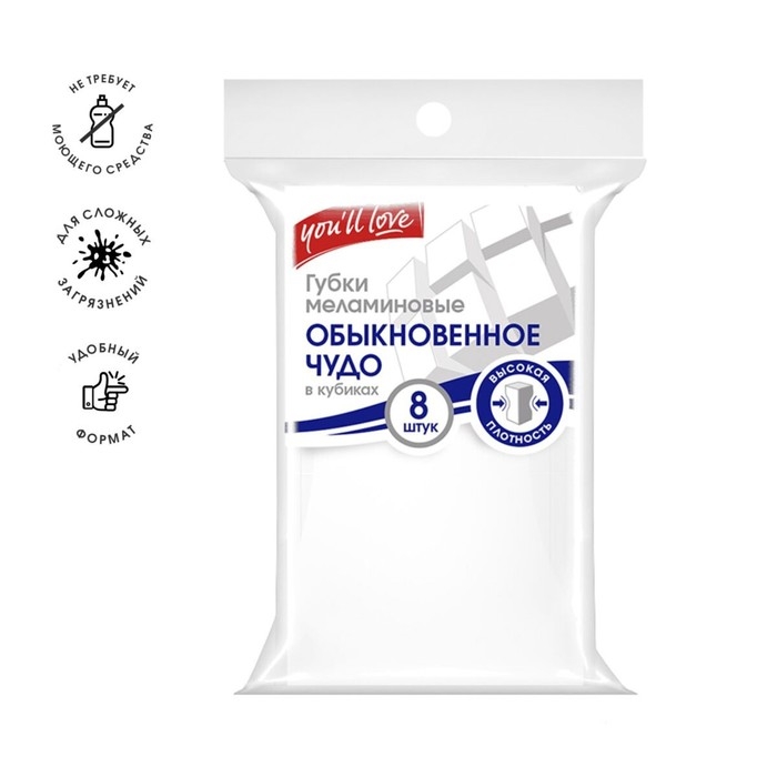 Губка меламиновая, 8 кубиков, 12х7.5х3.7 см