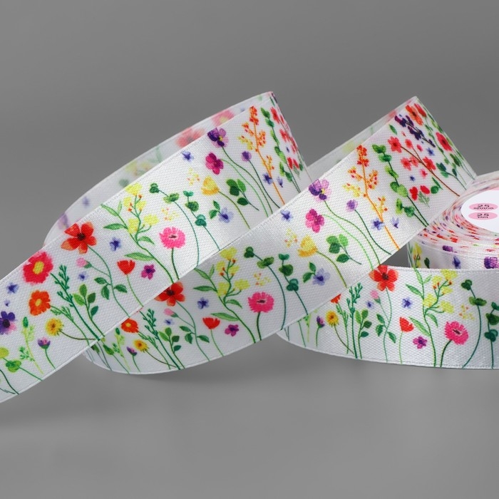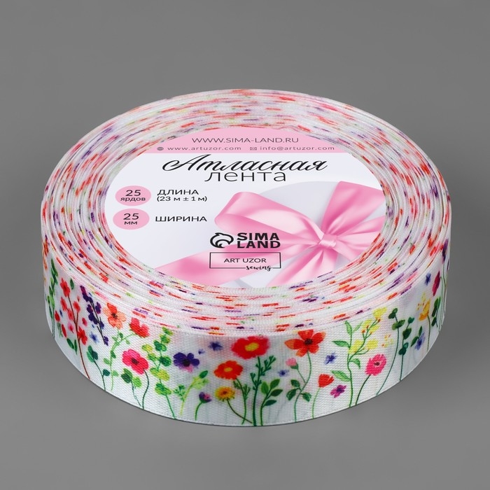 Лента атласная «Весеннее поле», 25 мм, 23 ± 1 м, разноцветная