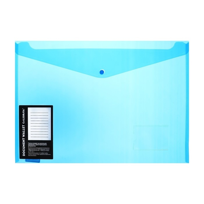 Папка-конверт формата А3 изготовлена из прозрачного пластика толщиной 0,18 мм синего цвета. Закрывается на кнопку. Предназначена для хранения и транспортировки бумажных документов. Надежно защищает документы от смятия и загрязнения.