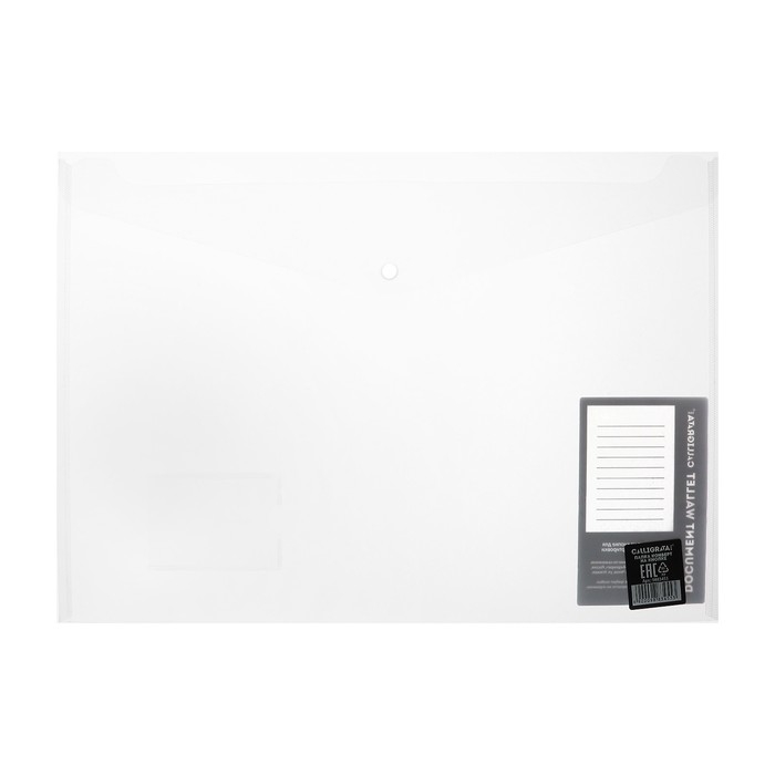 Папка-конверт на кнопке А4, 330 мкм, Calligrata, обшитая, с текстильной вставкой, прозрачный, тиснение, МИКС