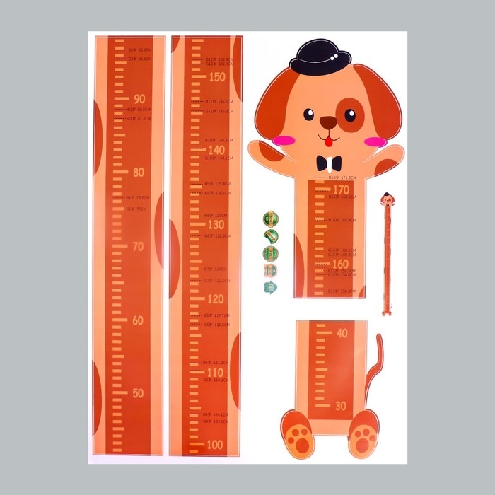 Наклейка пластик интерьерная цветная ростомер "Собачка в шляпке" 45x60 см