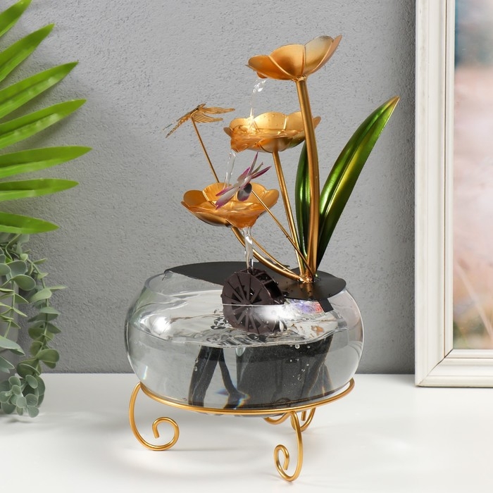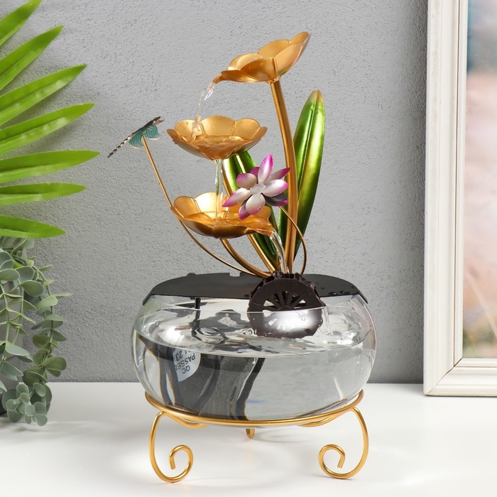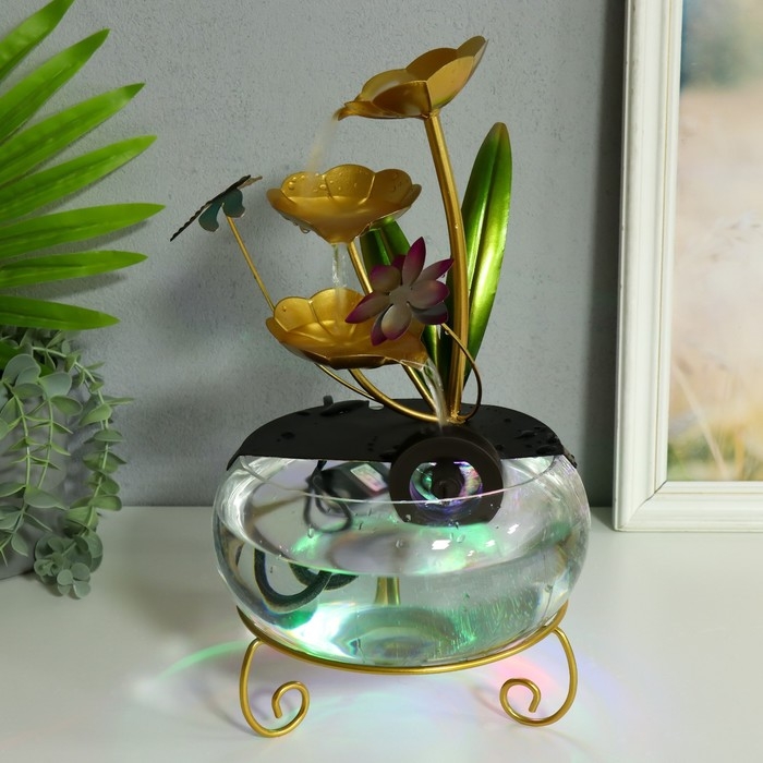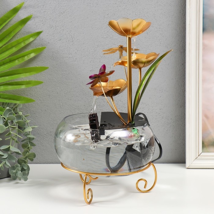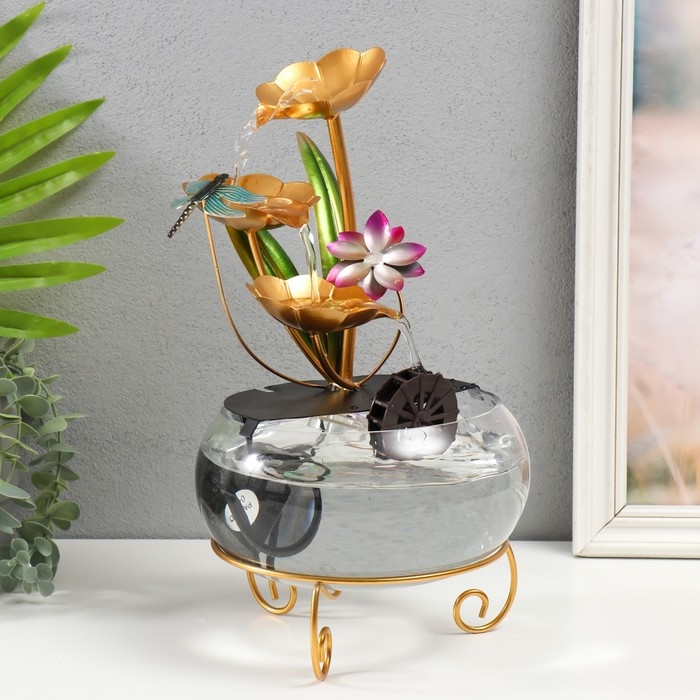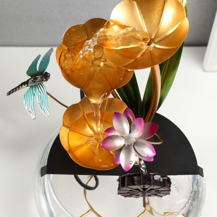 Фонтан настольный от сети "Стрекоза в цветах" 21х21х34 см