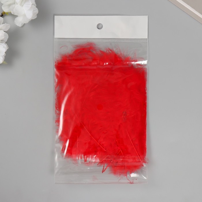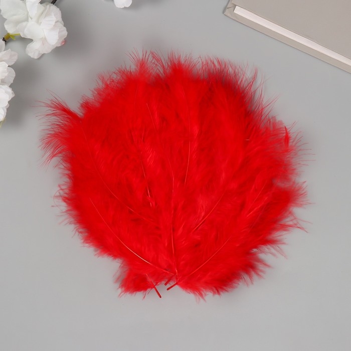 Перо декоративное гусиное пуховое "Алое" набор 40 шт h=10-15 см