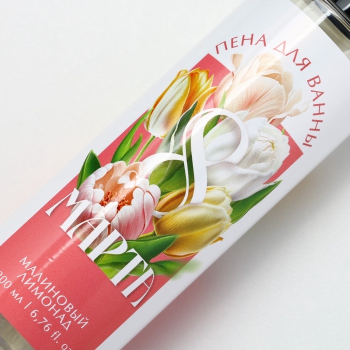 Пена для ванны «С 8 Марта!», 200 мл, аромат малинового лимонада, ЧИСТОЕ СЧАСТЬЕ