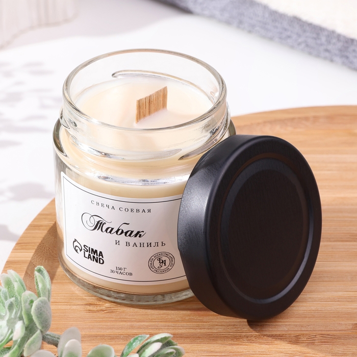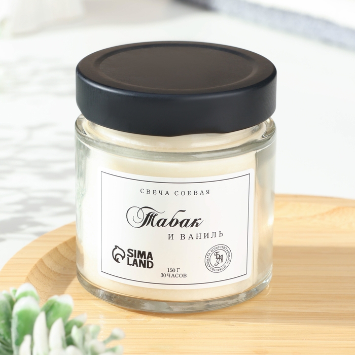 Свеча ароматическая из соевого воска в банке, 150 г, табак и ваниль
