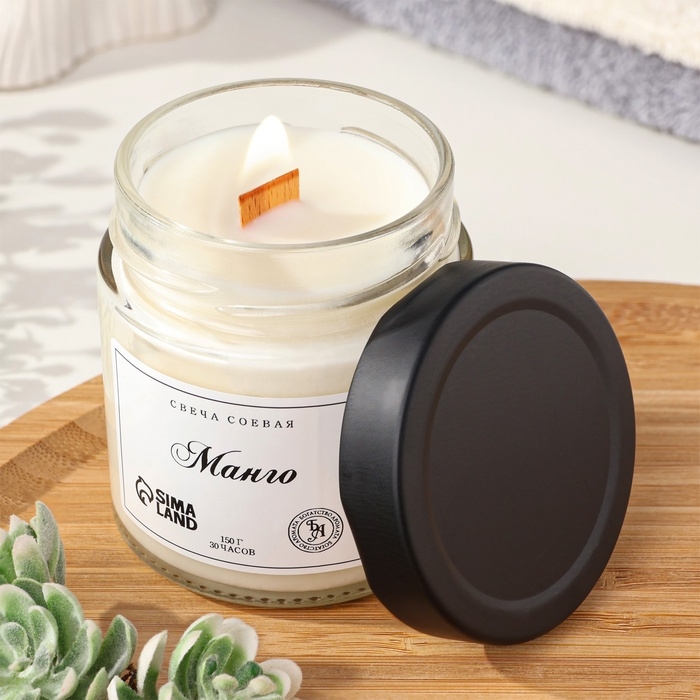 Свеча ароматическая из соевого воска в банке, 150 г, манго