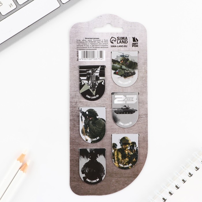Закладки магнитные, 6 шт «Юный защитник»