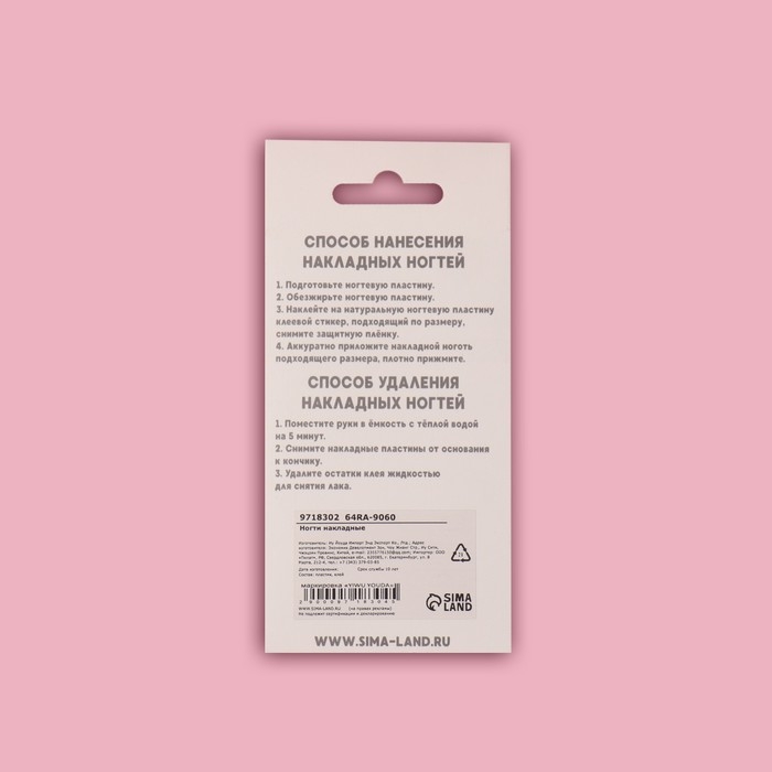 В наборе с накладными ногтями идут клеевые пластины. За счёт этого уменьшается вероятность механического травмирования природного ногтя. Клеевые пластины безопасны в применении и не вредят натуральным ногтям, в отличие от клея. Клей содержит составе высокую токсичность, что может сказаться на вашем организме.