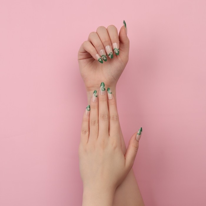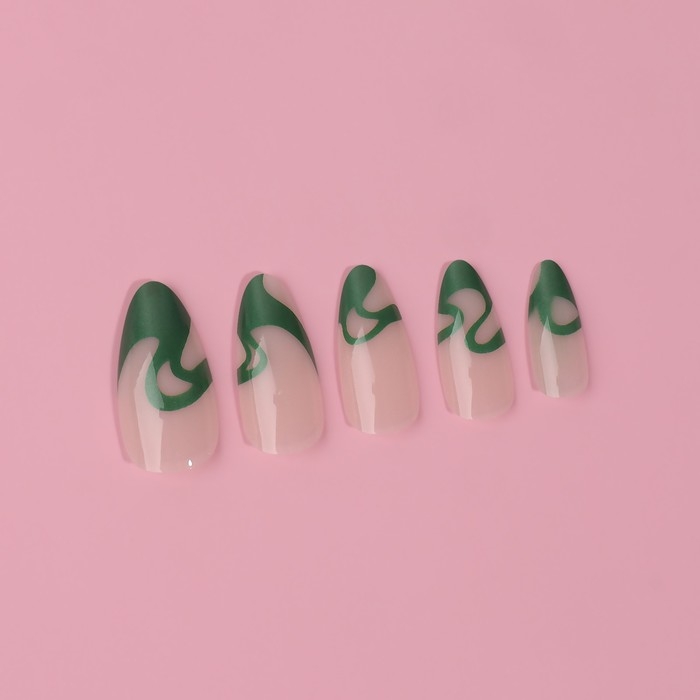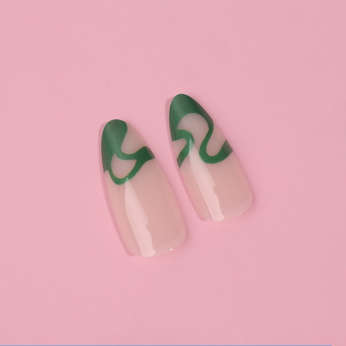 Накладные ногти «Pattern», 24 шт, с клеевыми пластинами, форма миндаль, бежевые, зелёные