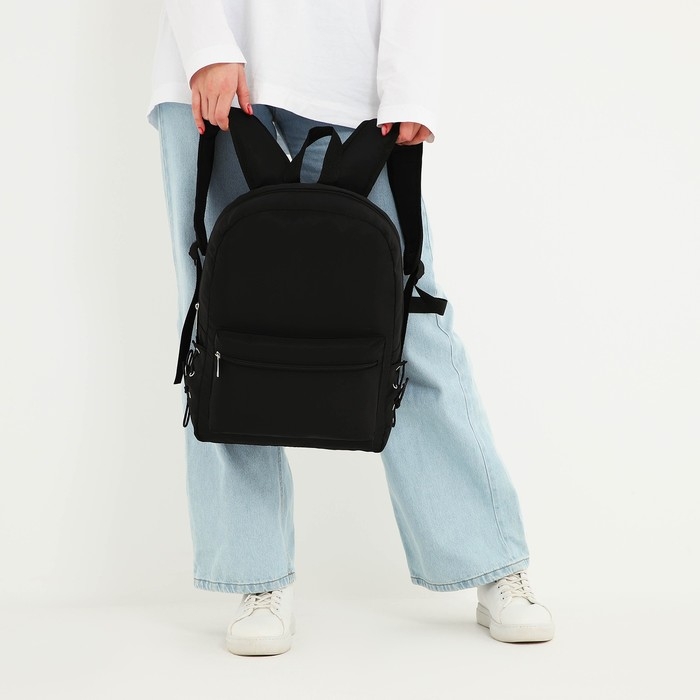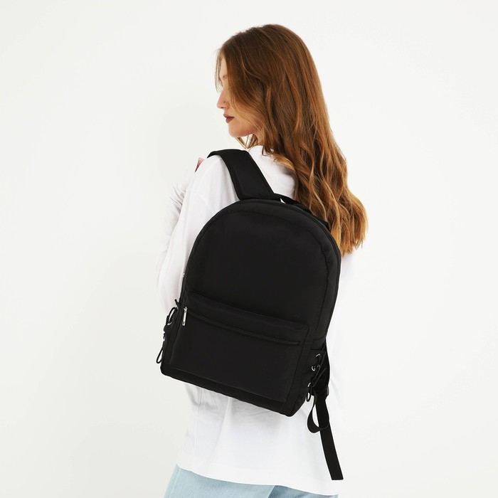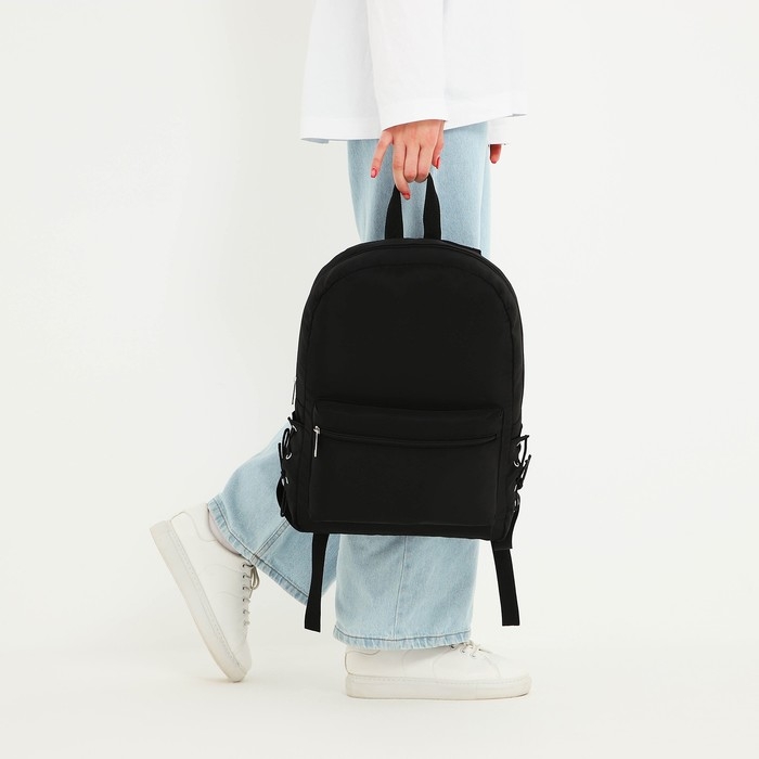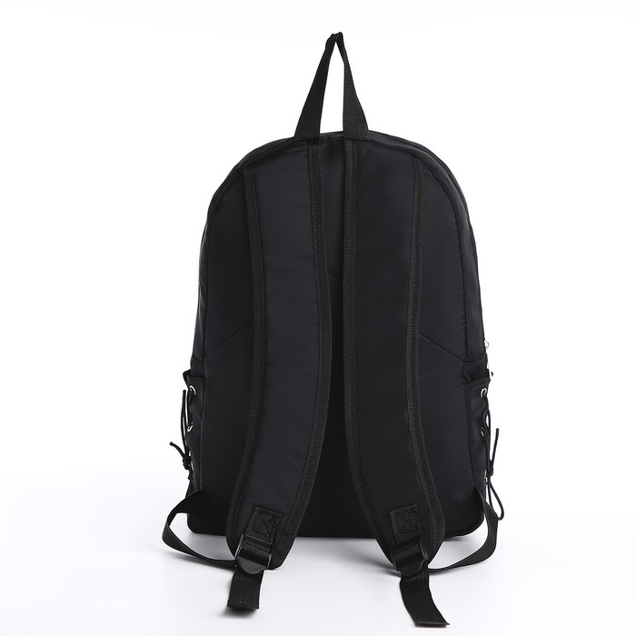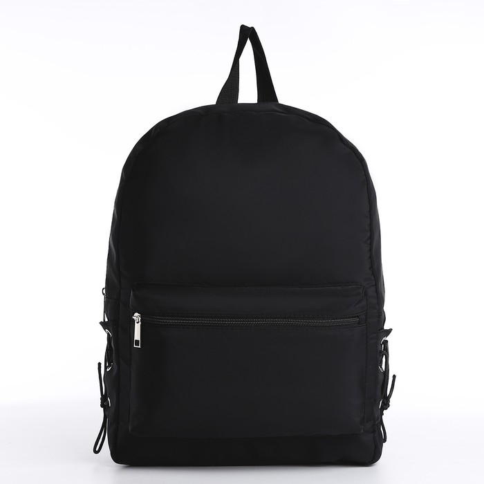Рюкзак школьный текстильный с боковыми лентами, 38х29х11см, цвет чёрный, отдел на молнии