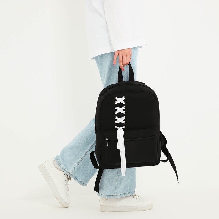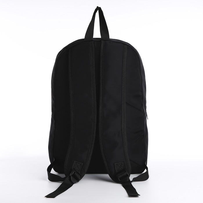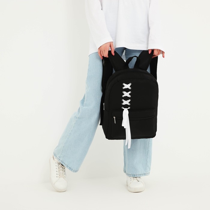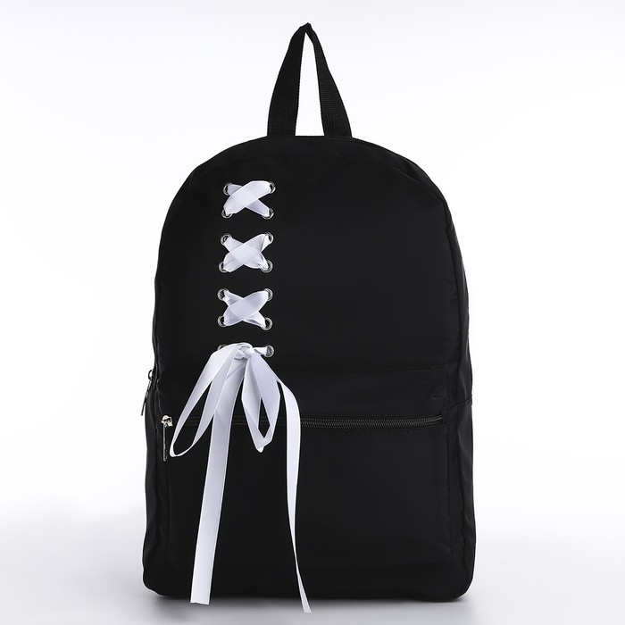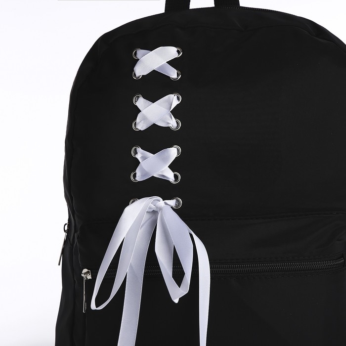 Рюкзак школьный текстильный с белой лентой, 38х29х11 см, цвет чёрный, отдел на молнии