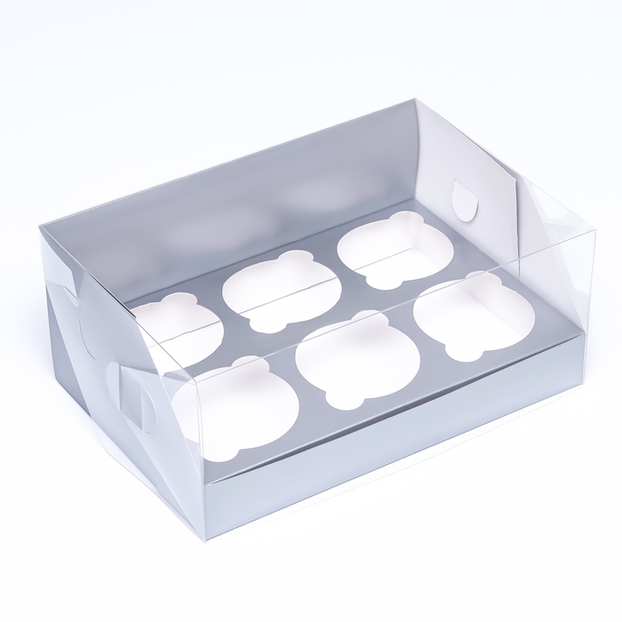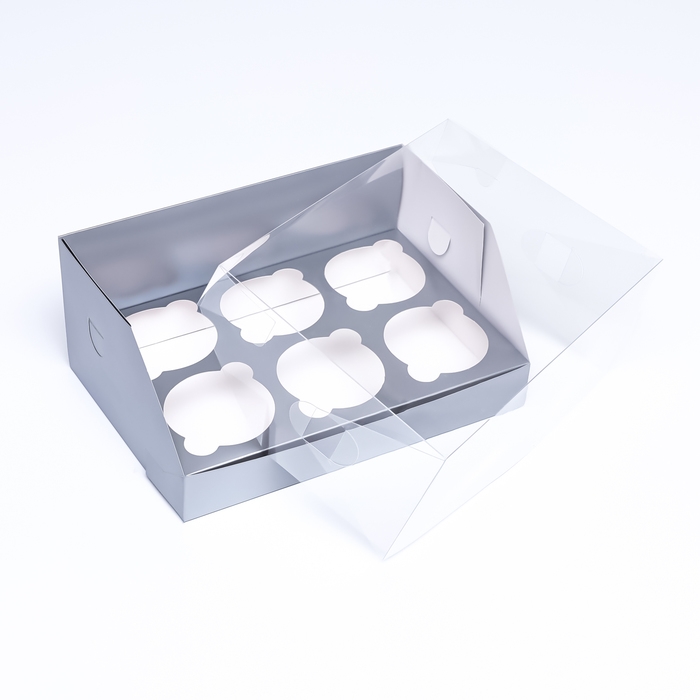 Коробка для 6 капкейков 23,5 х 16 х 10 , Серебро, кондитерская упаковка