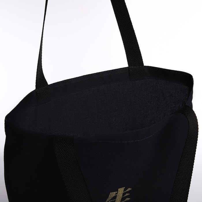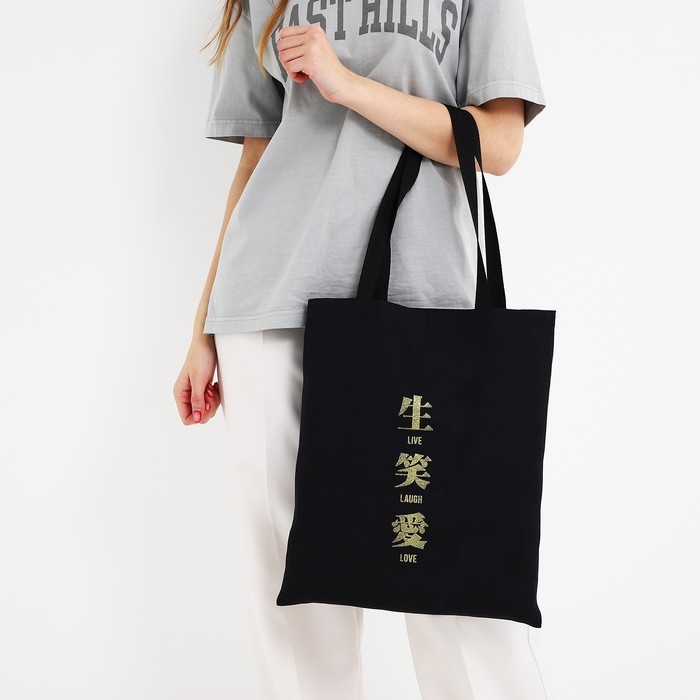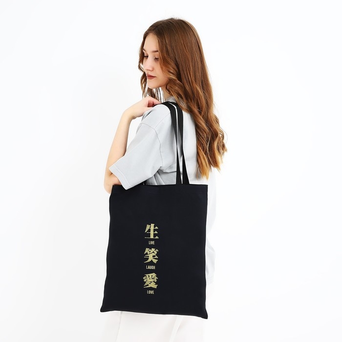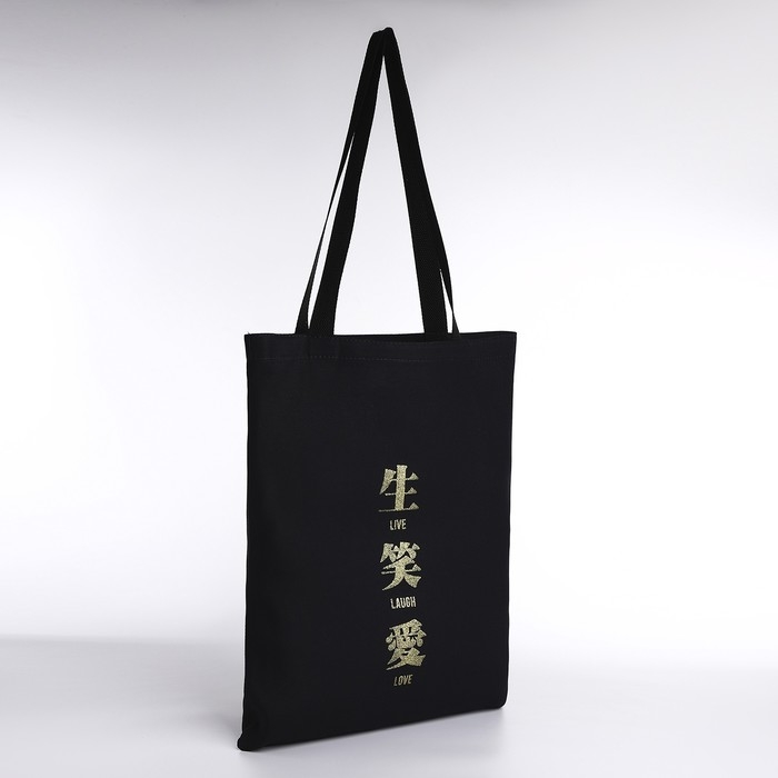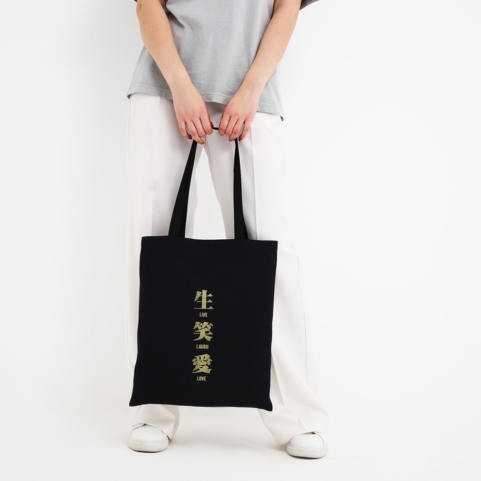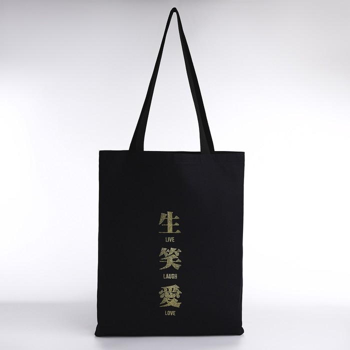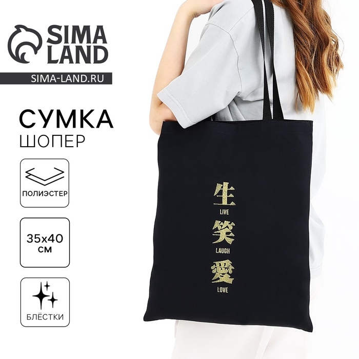 Шопер "Живи. Смейся. Люби", 35х0,5х40, принт с блёстками, без подклада, чёрный