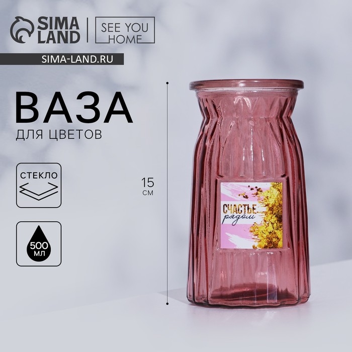 Ваза для цветов «Счастье рядом», 15 см, 500 мл.
